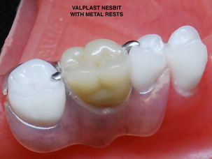 Hybrid partials allows for tooth-colored or tissue-colored clasps to be used in combination with a framework and bracing elements to improve the appearance of the partial denture.